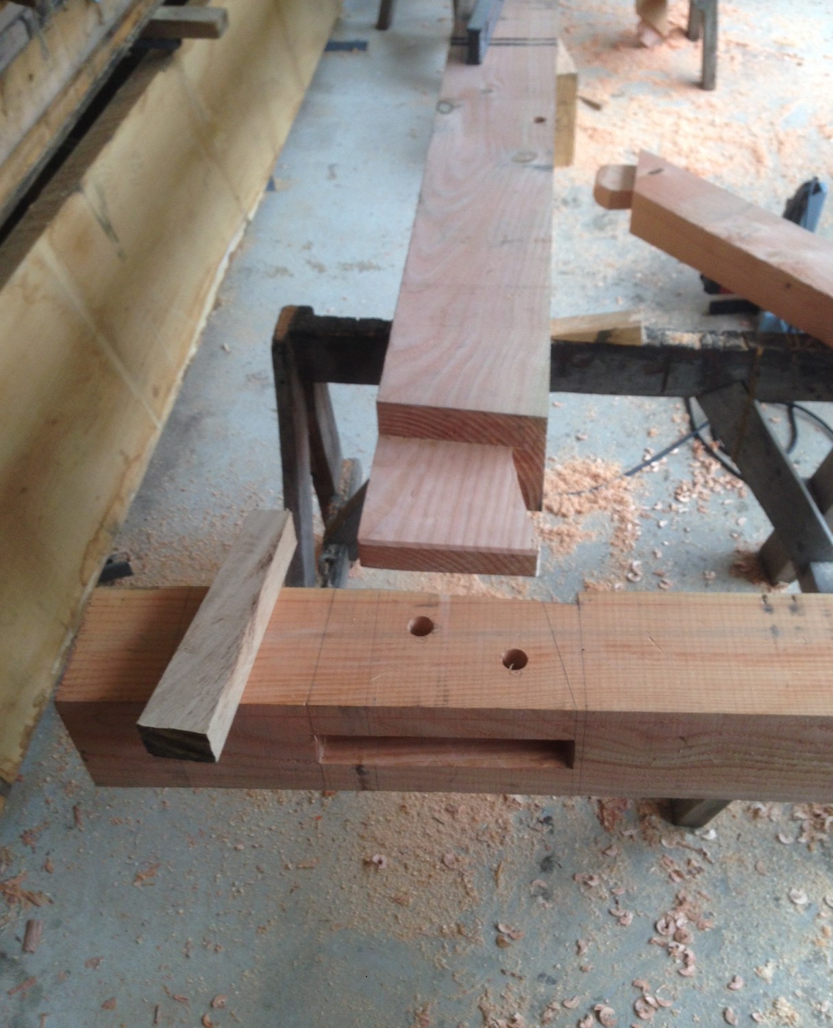 Currently working on Dore Outdoor Classroom, which is a traditional timber frame in Douglas Fir with Green [growing] roof. There are four cross frames with tie beams, but as these are joining into the posts and are in tension we are using [oak] wedged dovetail through tenons with diminished housing and two oak pegs. More to follow and hopefully video of construction on site.