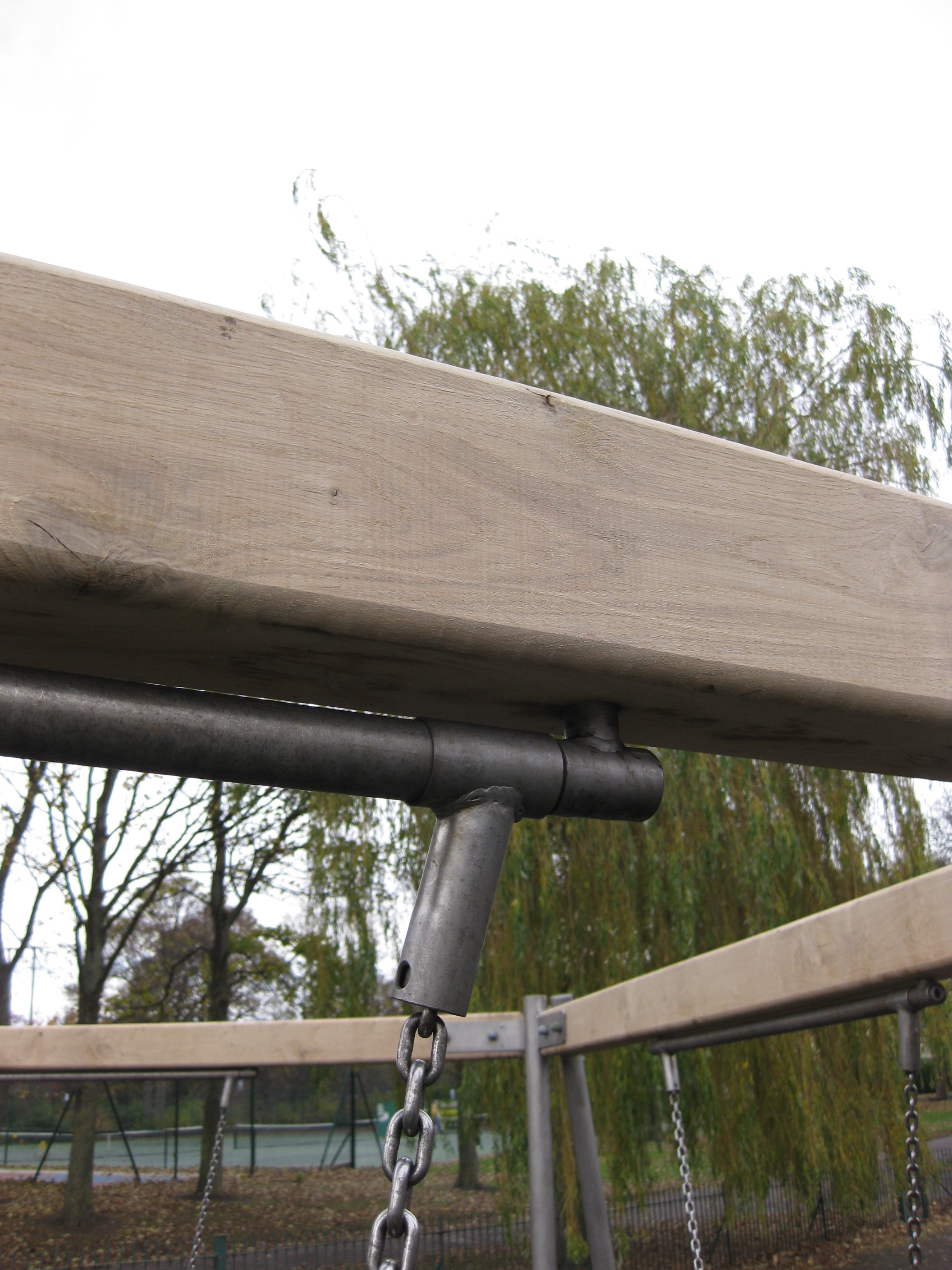 Steam-bent and glue-laminated English Oak, stainless steel fixings