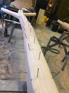 Steam-bent and glue-laminated English Oak, stainless steel fixings