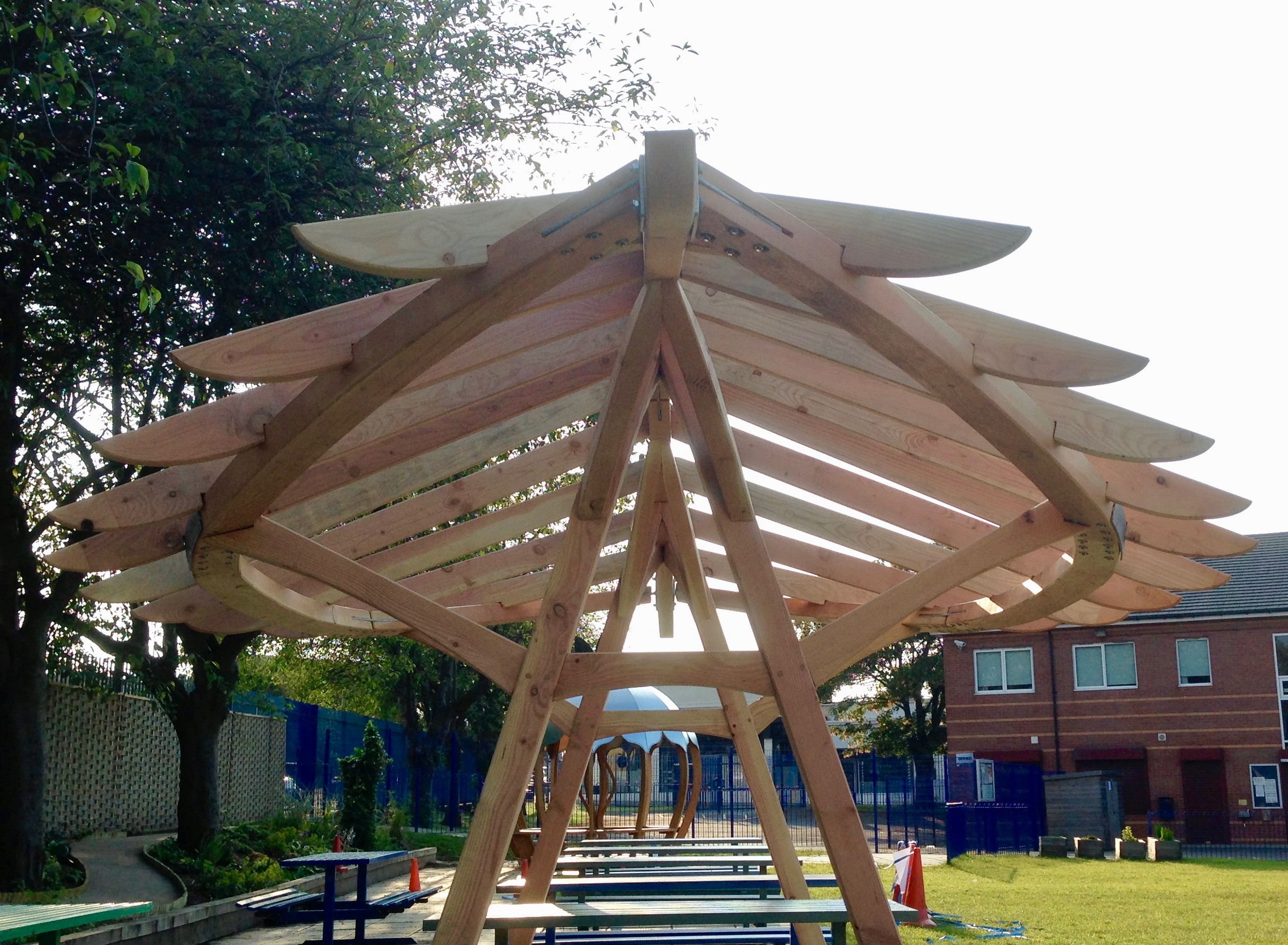 Timber sculpture, structure, shelter and seating for public spaces and private places