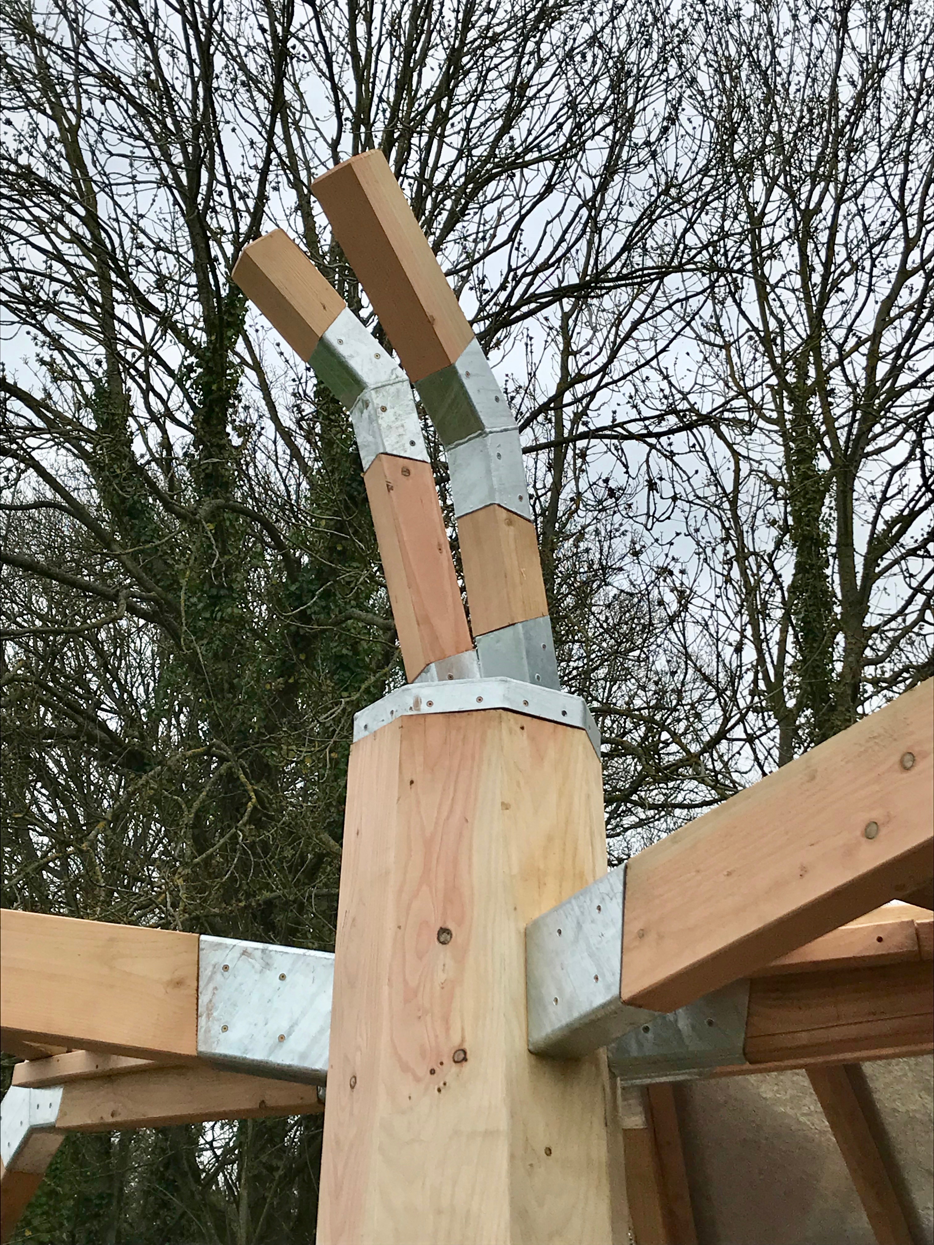 Galvanized steel structure, air-dried English Oak detailing, stainless steel fixings