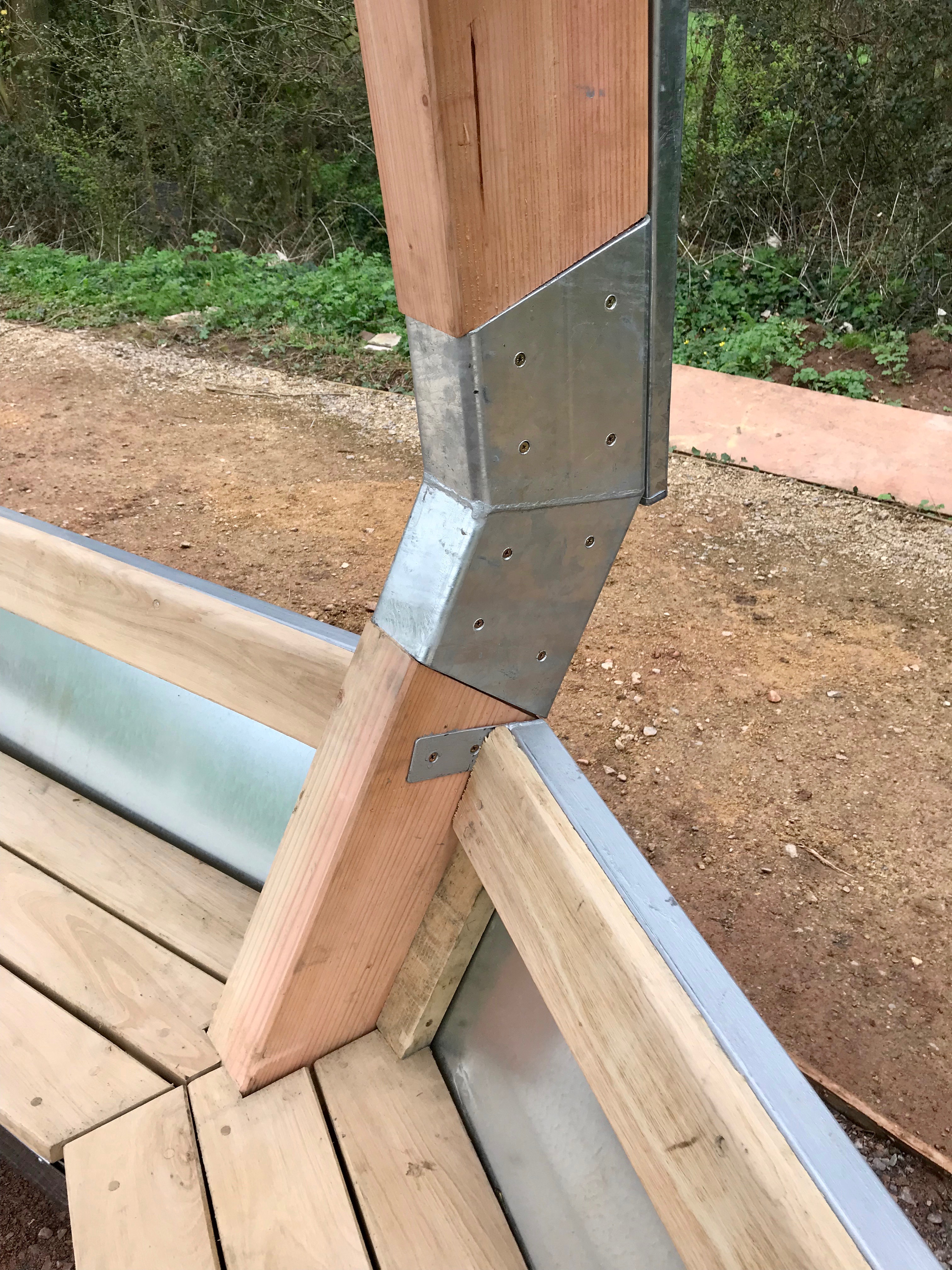 Galvanized steel structure, air-dried English Oak detailing, stainless steel fixings