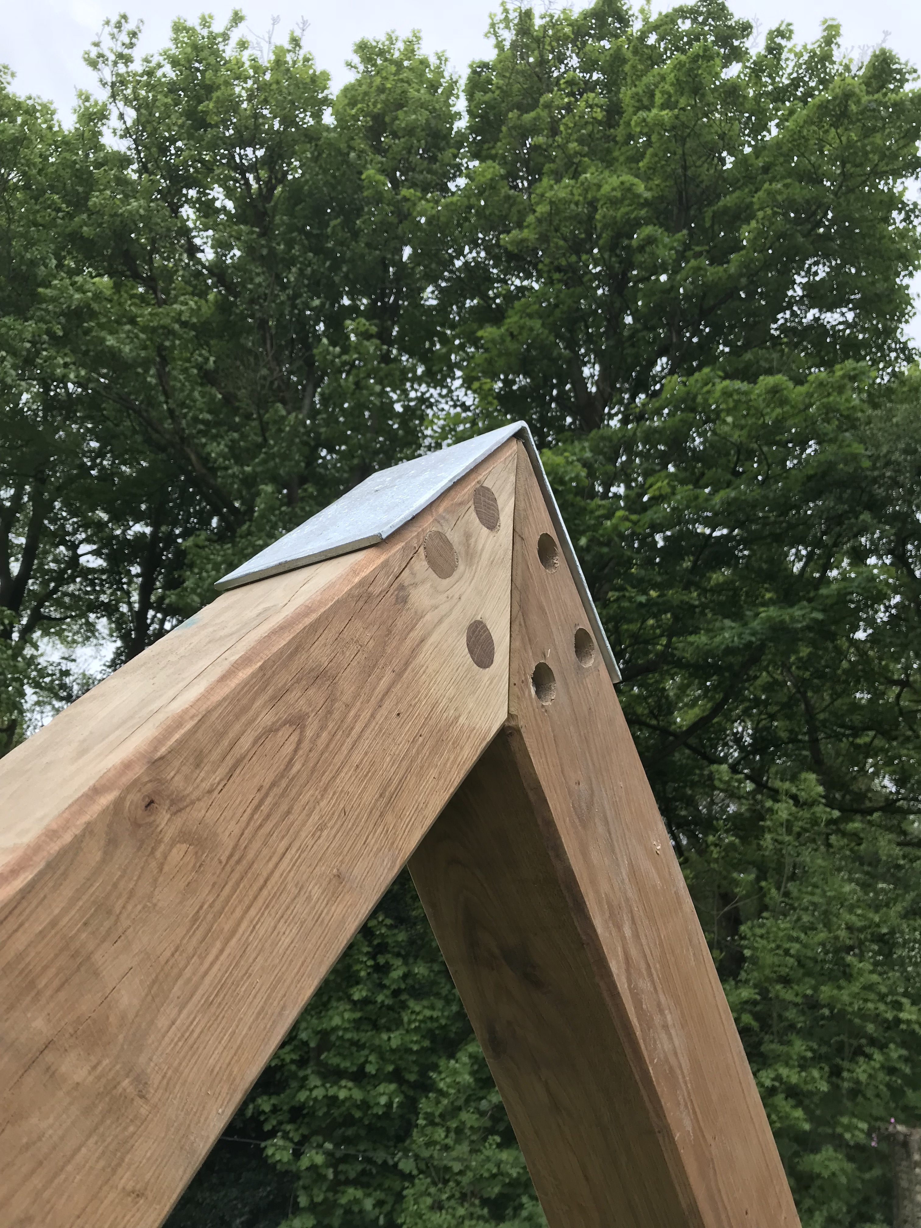 Galvanized steel structure, air-dried English Oak detailing, stainless steel fixings