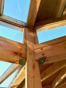 Galvanized steel structure, air-dried English Oak detailing, stainless steel fixings