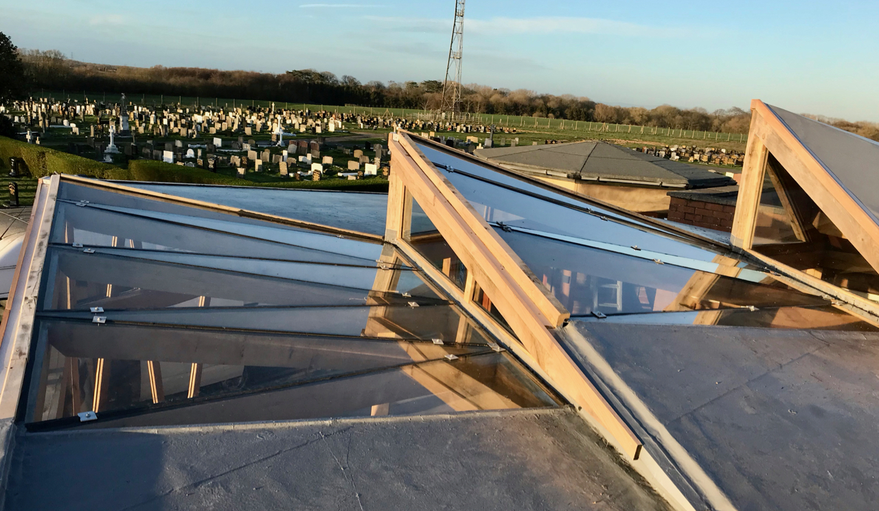 Galvanized steel structure, air-dried English Oak detailing, stainless steel fixings