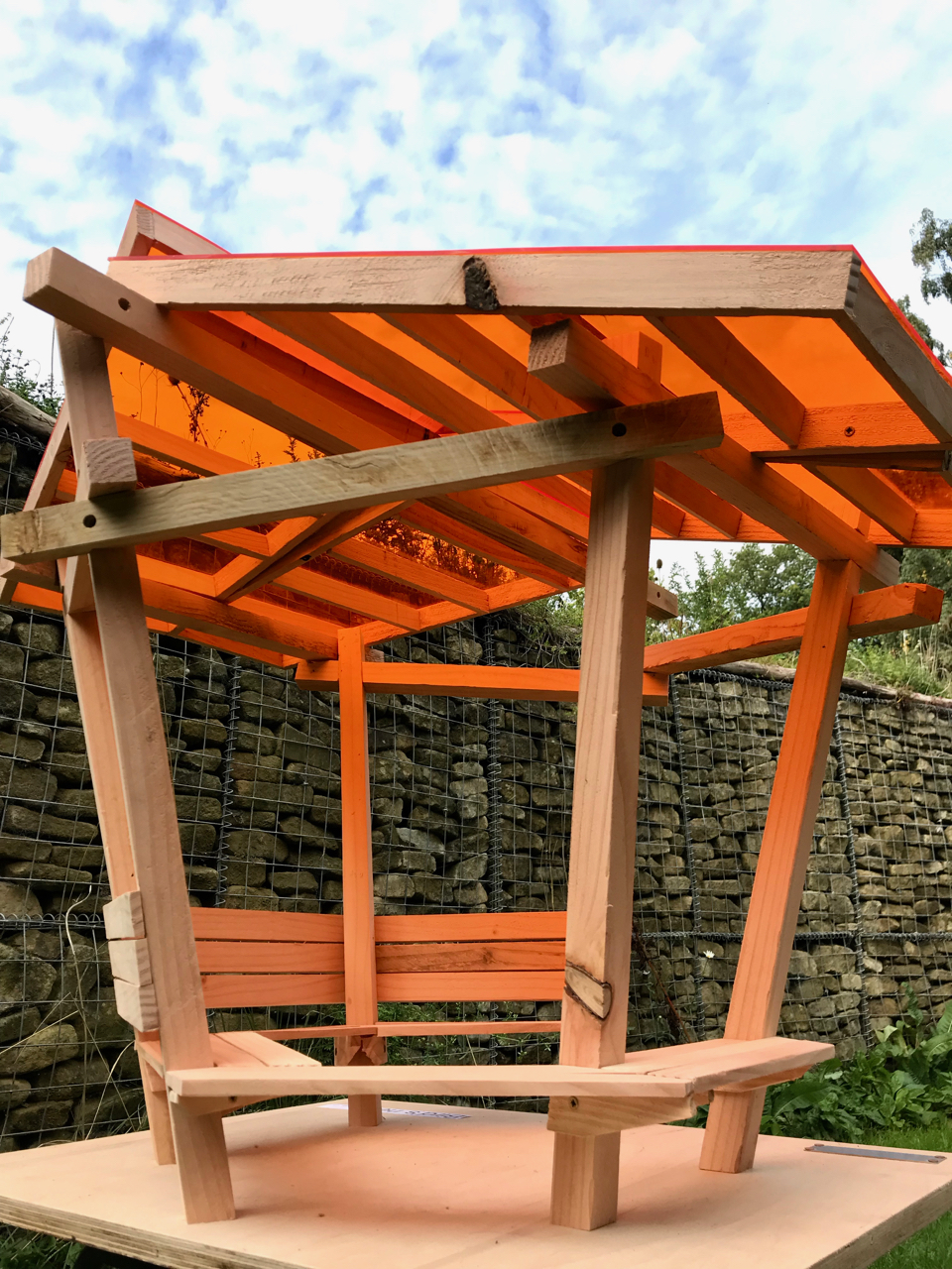 Timber sculpture, structure, shelter and seating for public spaces and private places