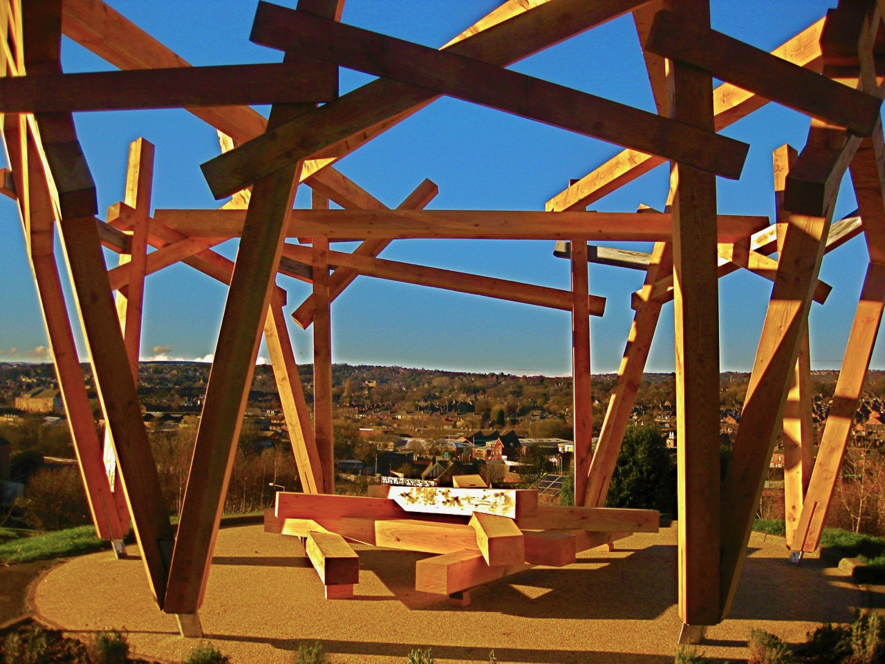 Timber sculpture, structure, shelter and seating for public spaces and private places