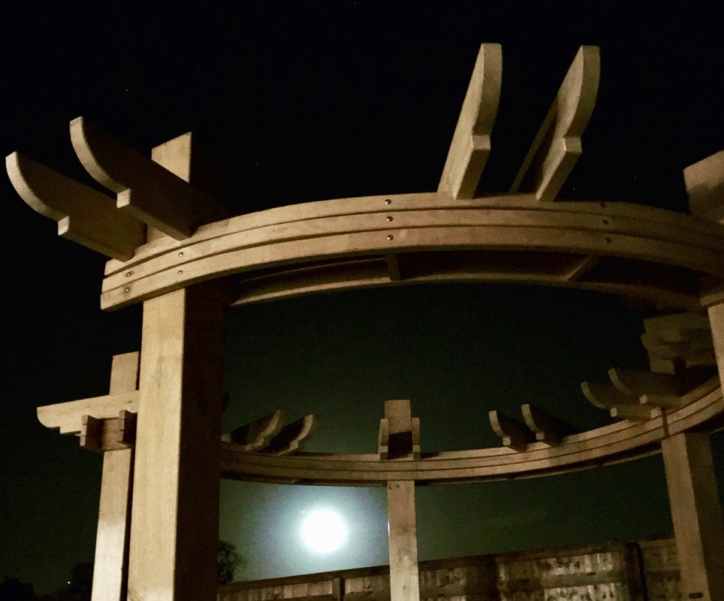 Circle pergola for a new housing development show house near Oxford. All made from UK oak, with steam bent glue laminated rails on a 3.5m diameter. The quarter sawn 200x200mm section oak posts and radial spars, where all milled and supplied by Hingley and Sons, Timber Merchants and Sawmillers, in Belper Derbyshire. We have made a number of other circle pergolas in the past.