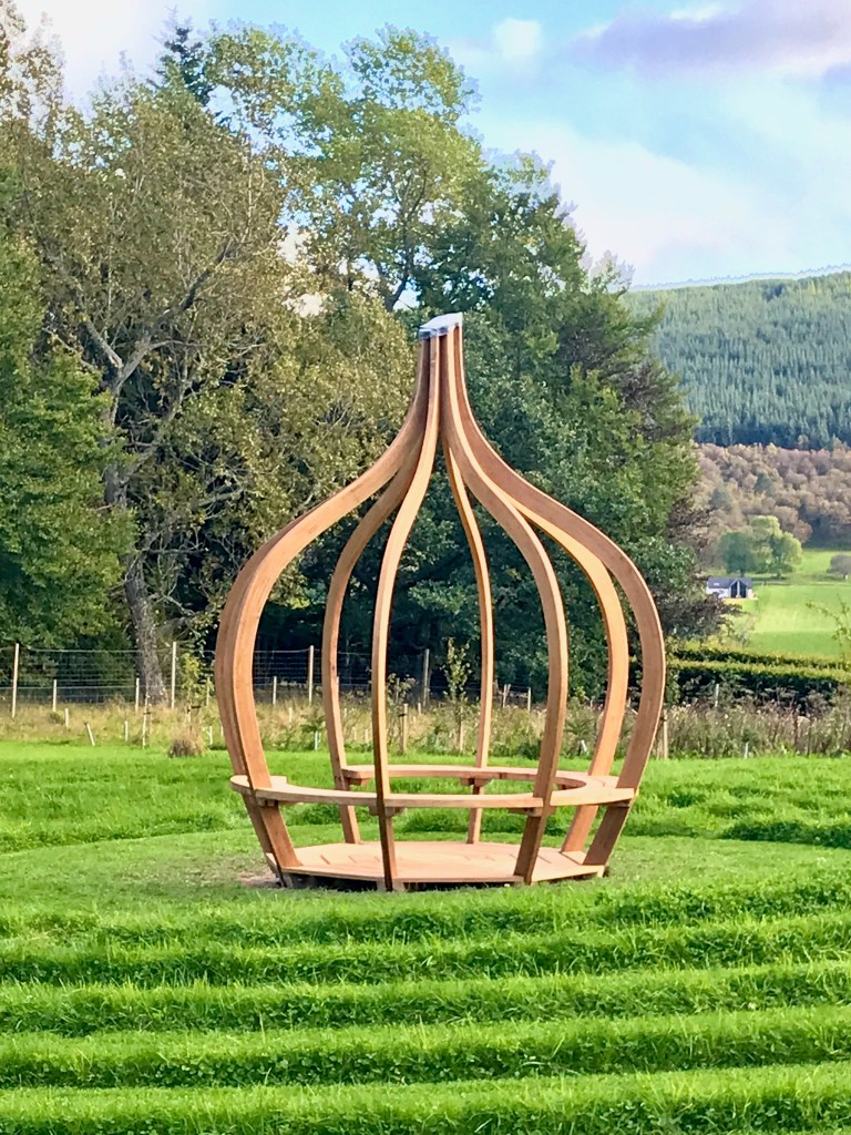 Our most Northerly Onion so far. Located in the Glenrinnes Organic Farm and Estate, just south of Inverness in Banffshire and on the top edge of the Cairngorms National Park. Set as the centrepiece of a grass labyrinth the Onion offers amazing panoramic views beyond the newly planted woodland.