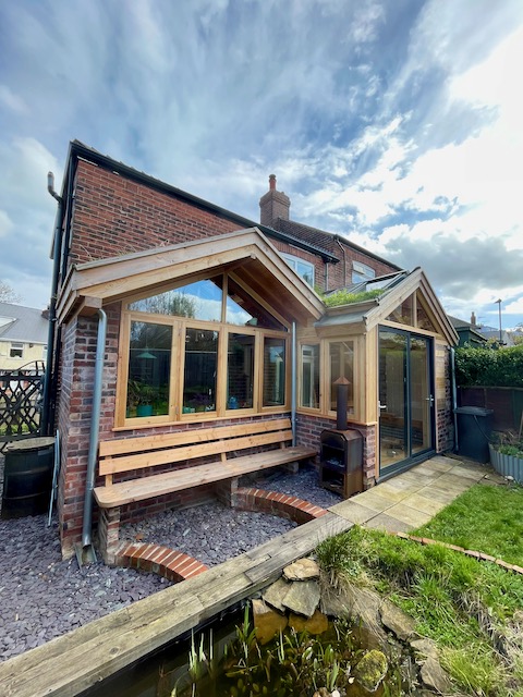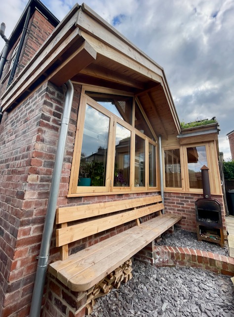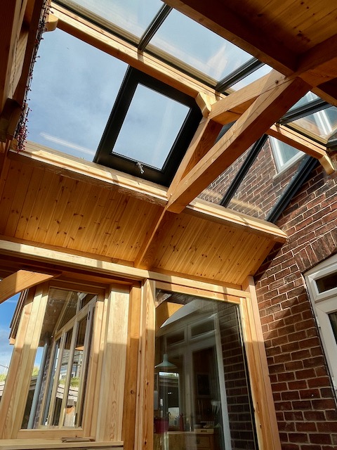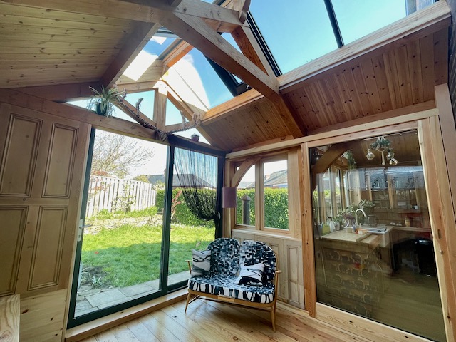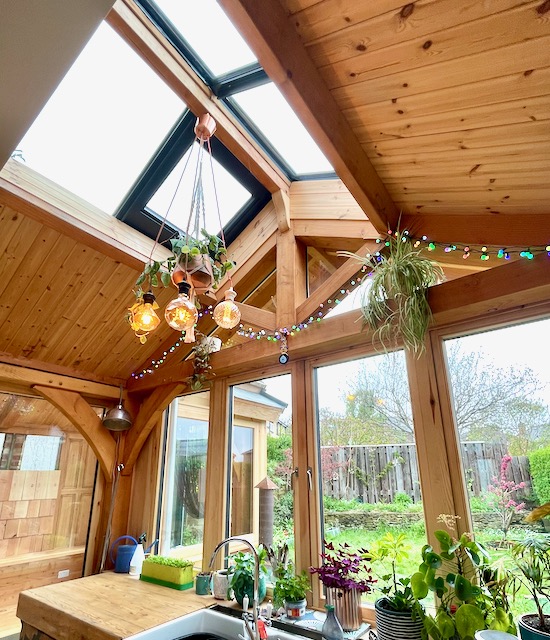 Structural traditional frame and triple glazed windows all made from UK FSC Douglas Fir timber.