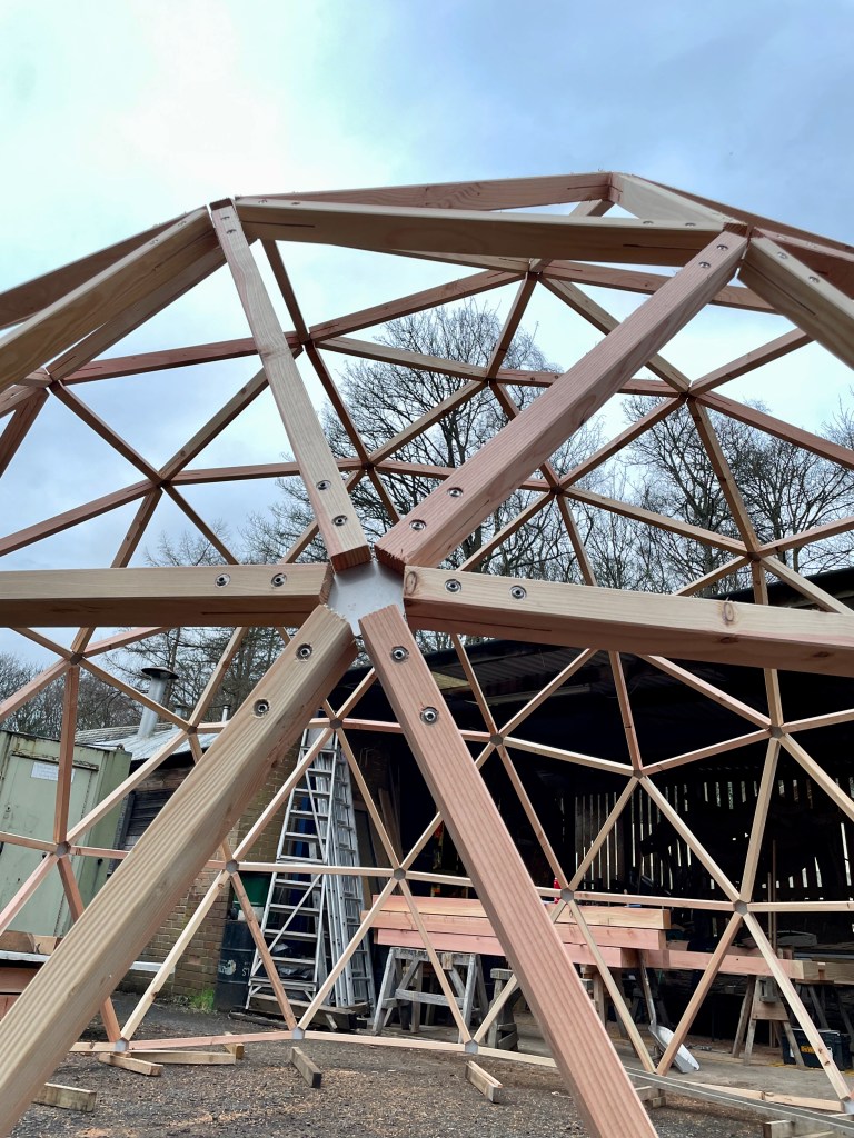 October 8, 2024 Geodome Six metre Geodome. Douglas Fir and Stainless Steel. Triangles, pentagons and hexagons…. Click to share on Facebook (Opens in new window) Facebook Click to share on X (Opens in new window) X Click to share on Pinterest (Opens in new window) Pinterest More Click to share on LinkedIn (Opens in new window) LinkedIn Click to share on Reddit (Opens in new window) Reddit Click to share on Tumblr (Opens in new window) Tumblr Like Loading...