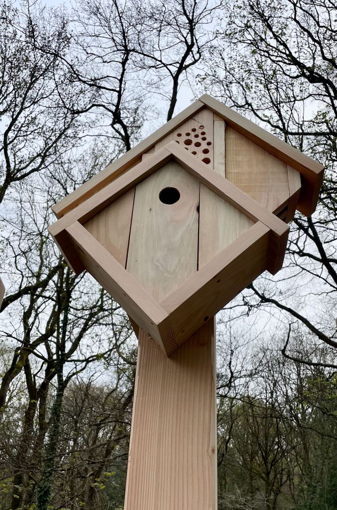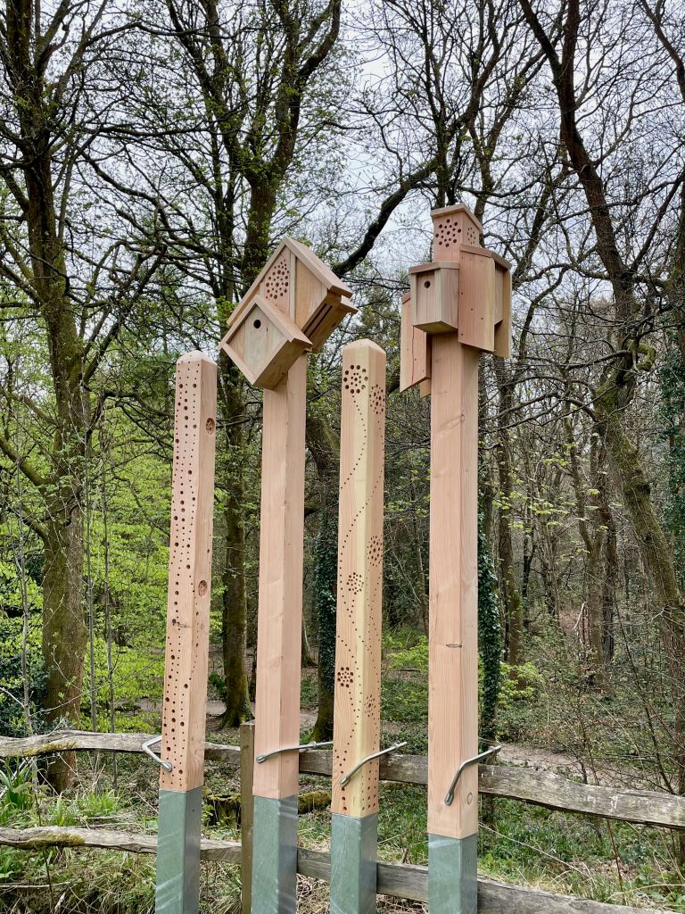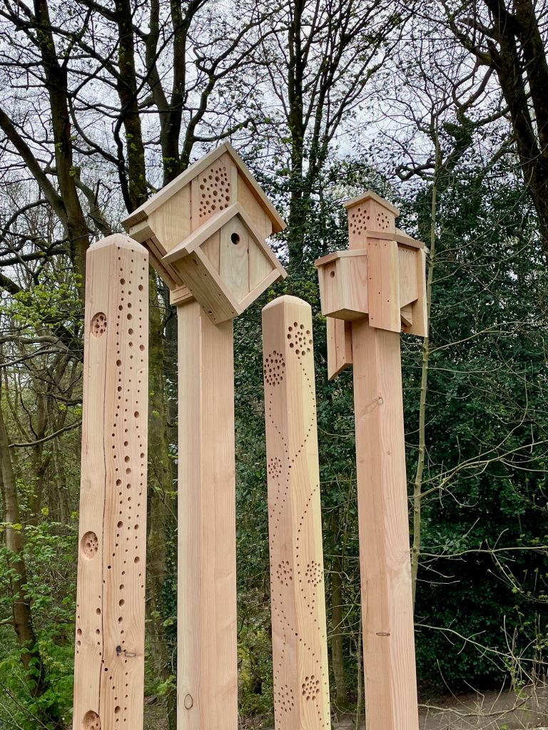 We have just designed, made and delivered a series of Habitat Cluster Posts, Bug Habitat poles, individual boxes and a W bug house letter to a revitalised pocket park in the middle of Watord, next to St Marys Church. The boxes will hopefully provide lofty homes for birds, bats, butterflies and bugs. installed pictures to follow.