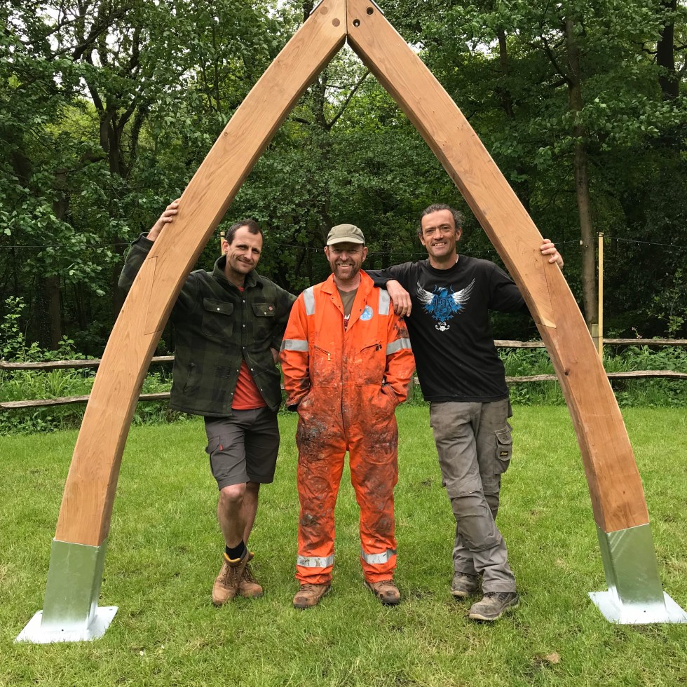 Steam-bent and glue-laminated English Oak, stainless steel fixings