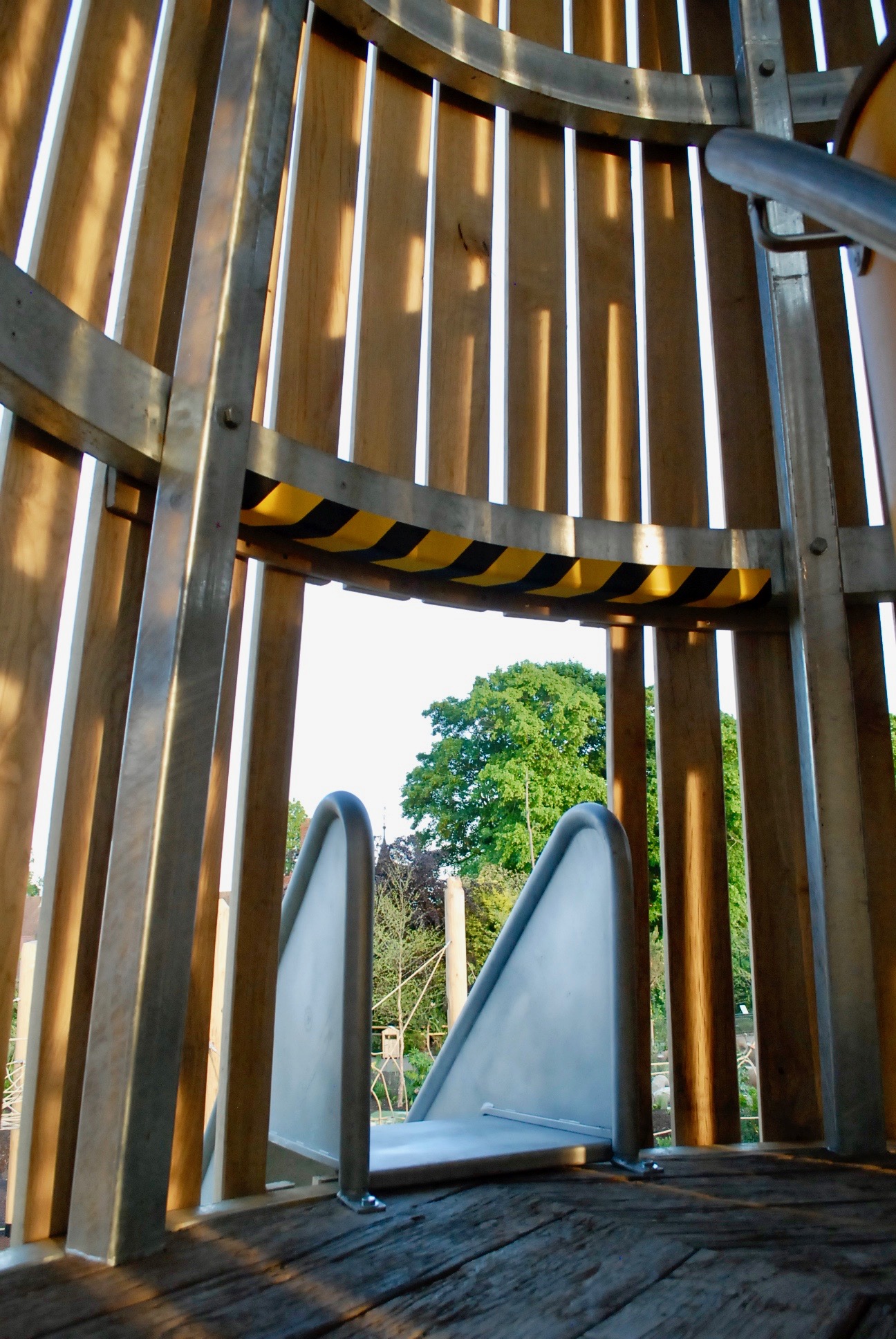 Galvanized steel structure, air-dried English Oak detailing, stainless steel fixings