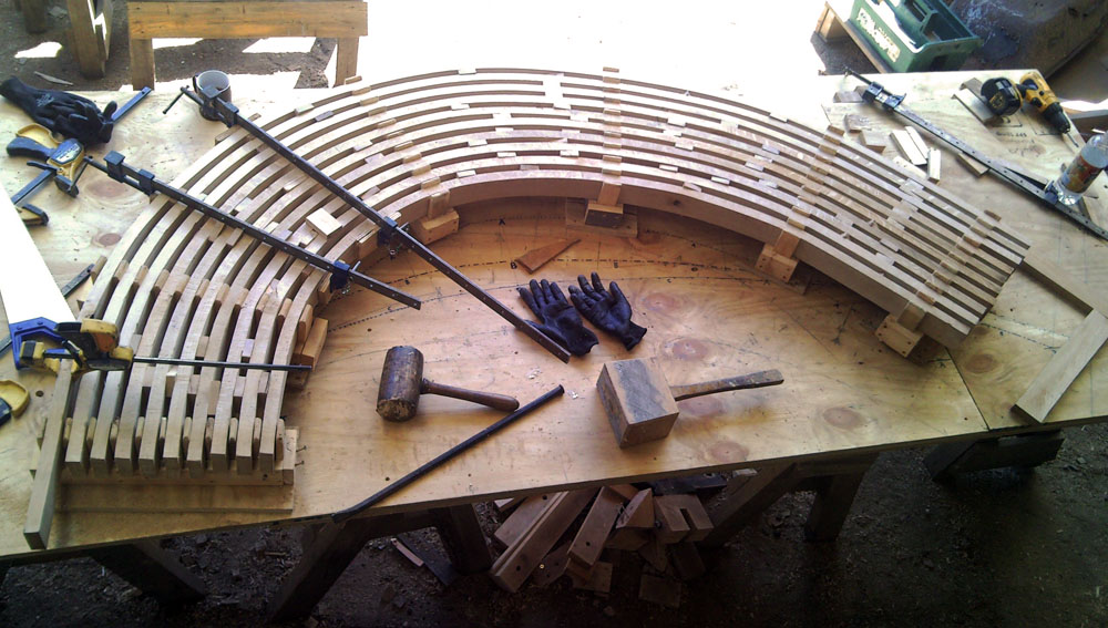 Steam-bent and glue-laminated English Oak, stainless steel fixings