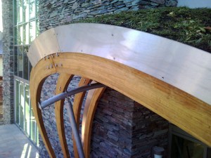 Galvanized steel structure, air-dried English Oak detailing, stainless steel fixings