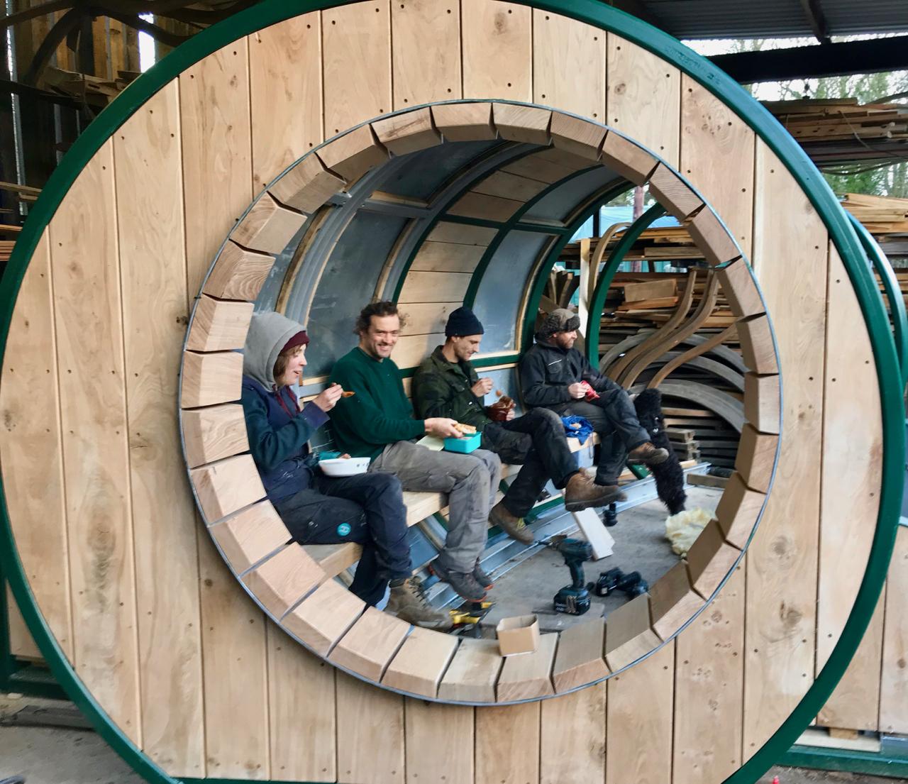 Steam-bent and glue-laminated English Oak, stainless steel fixings
