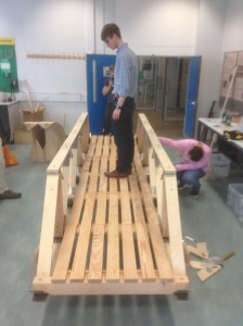 Steam-bent and glue-laminated English Oak, stainless steel fixings