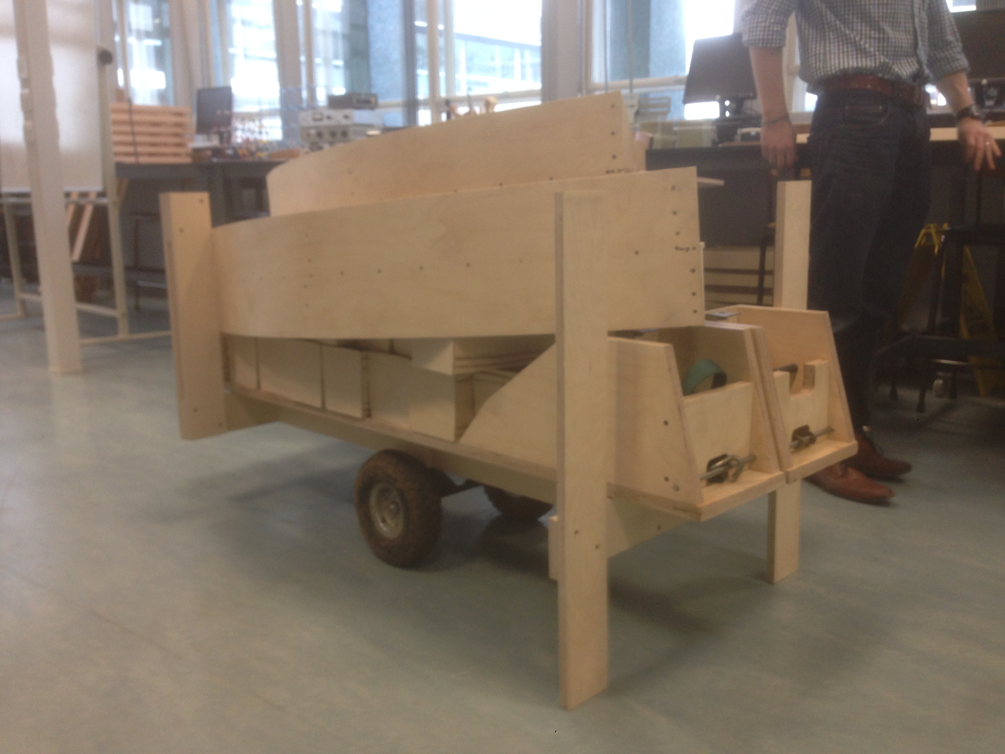 Steam-bent and glue-laminated English Oak, stainless steel fixings