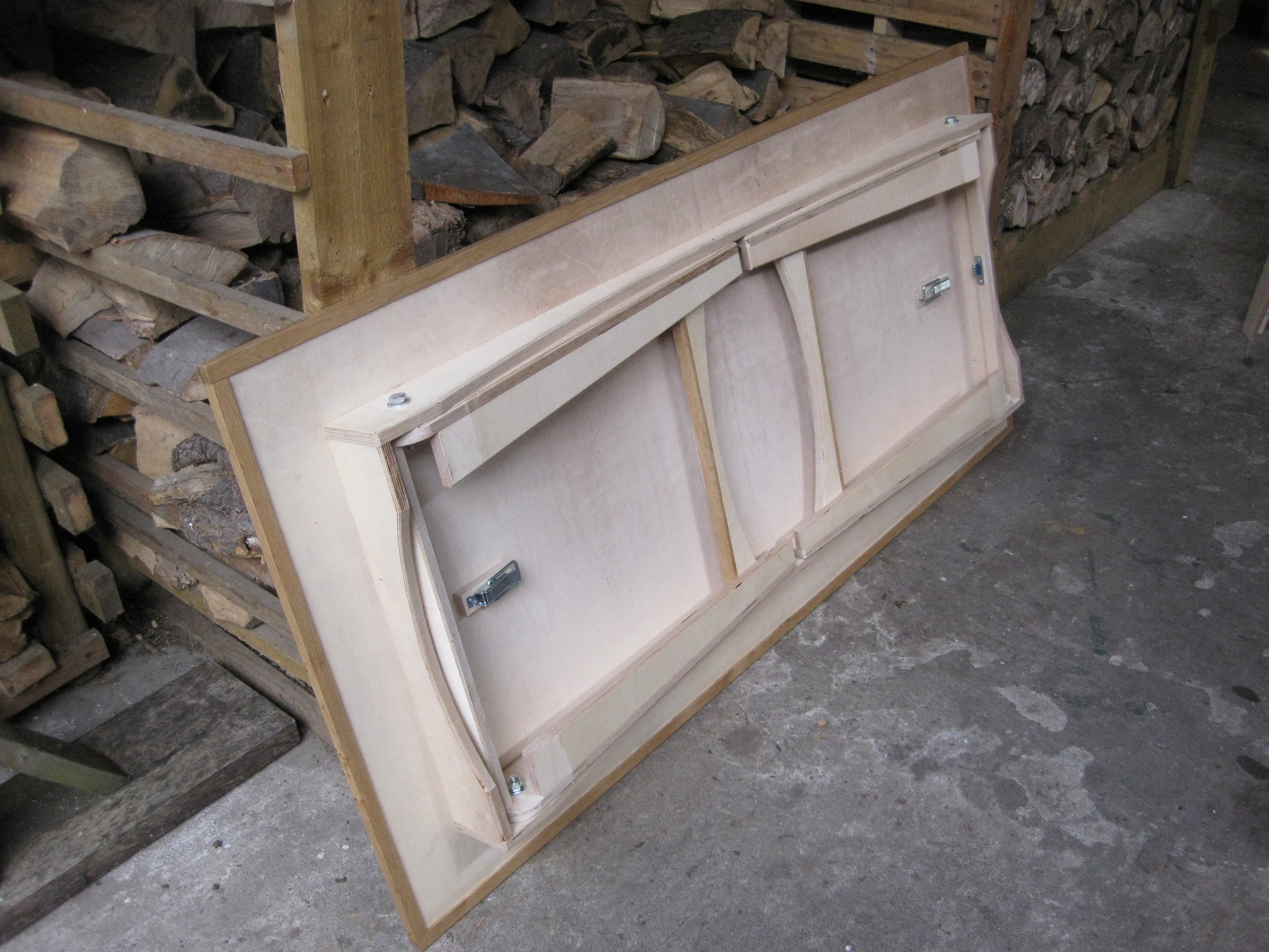 Steam-bent and glue-laminated English Oak, stainless steel fixings