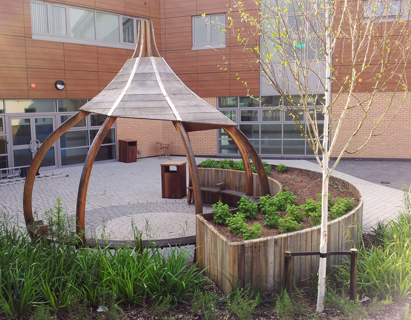 Timber sculpture, structure, shelter and seating for public spaces and private places