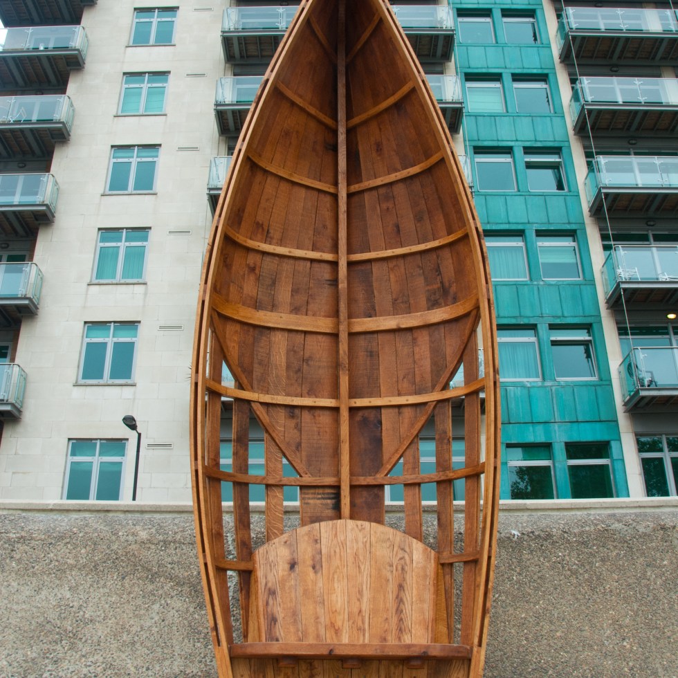 Steam-bent and glue-laminated English Oak, stainless steel fixings