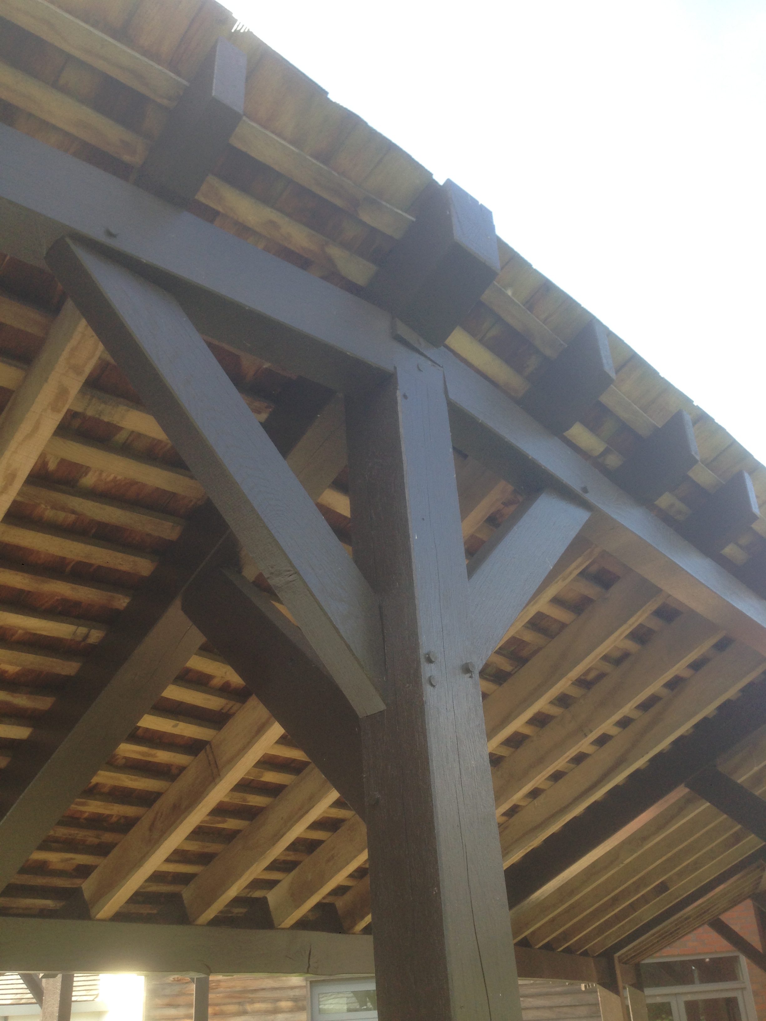 Galvanized steel structure, air-dried English Oak detailing, stainless steel fixings