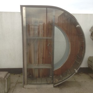 October 6, 2016October 6, 2016 Fields of Learning D Steam bent oak external frame with cedar cladding [from new school] and door furniture from old school – display cabinet