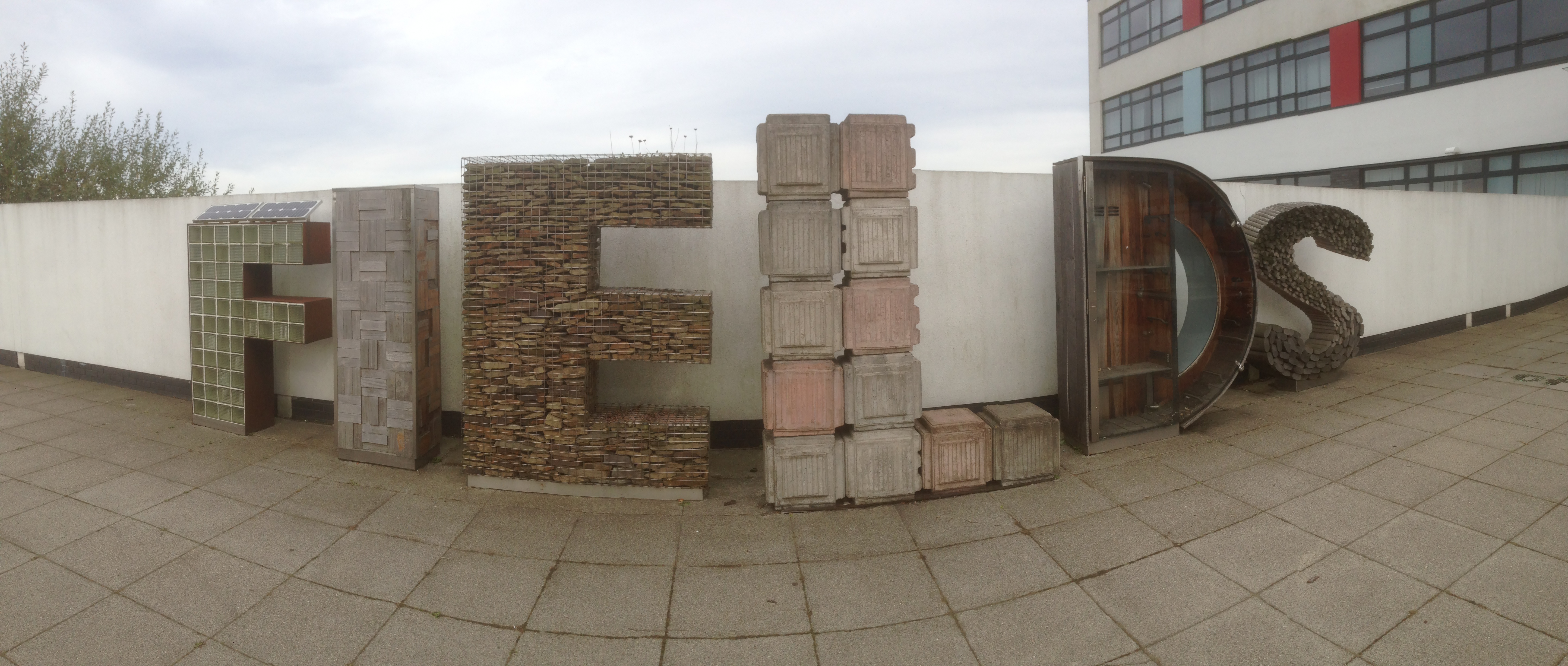 Galvanized steel structure, air-dried English Oak detailing, stainless steel fixings