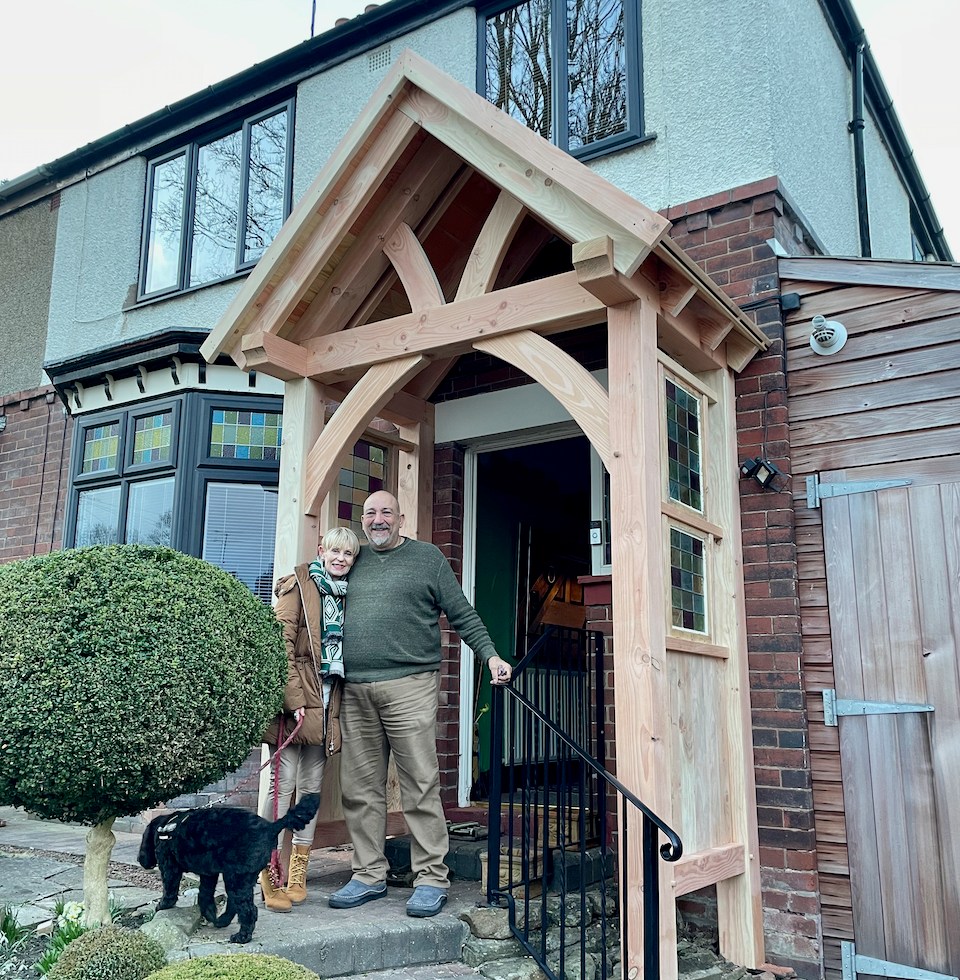 Galvanized steel structure, air-dried English Oak detailing, stainless steel fixings