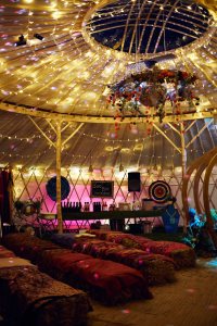 yurt inside with lights